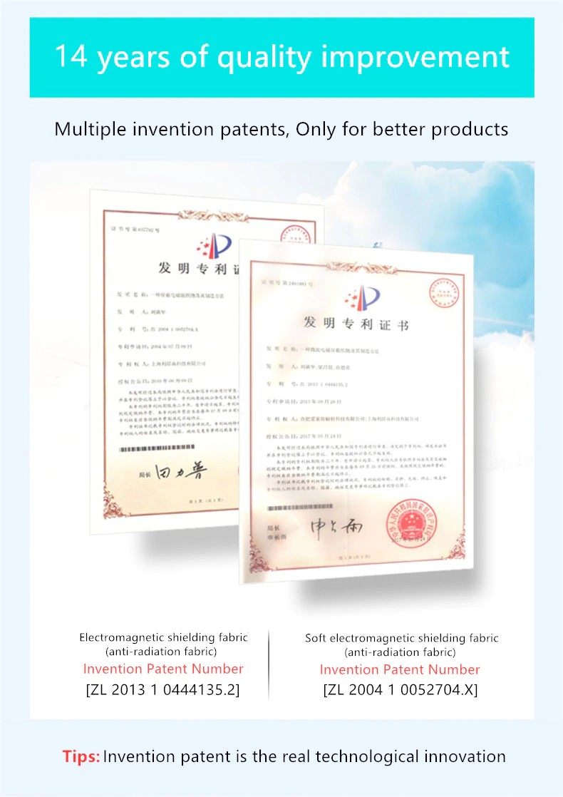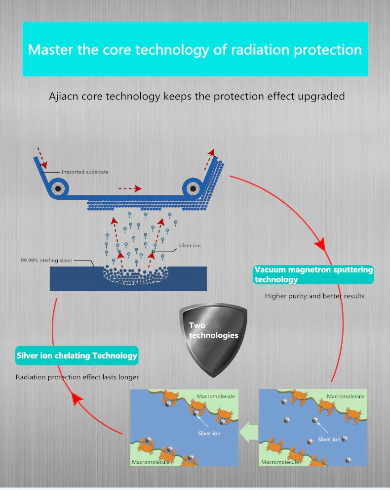 La fibra d'argento resistenti alle radiazioni di protezione Cappellini sono high-tech prodotto ottenuto da in modo permanente bonding argento per una superficie in fibra di attraverso una tecnica speciale. Questa struttura non solo rende la fibra d'argento mantenere la originale tessili per la proprietà, ma dà anche tutto il La funzione magica di argento, il magico effetto di fibra d'argento. Argento ha la più efficace proprietà antimicrobiche. Fibra d'argento resistenti alle radiazioni a prova di tessuto fatto di argento-contenente fibra utilizzando la nanotecnologia è l'ultima resistenti alle radiazioni a prova di la tecnologia in tutto il mondo dopo tessuto in fibra di metallo anti-radiazioni. Ha le funzioni di protezione dalle radiazioni, anti-batteriche e anti-fouling, ed è la produzione di radiazioni a prova di Cappellini tessuto ideale. Il suo effetto anti-radiazioni è superiore alle radiazioni a prova di tessuto fatto di altri materiali metallici, che può essere indossato vicino al corpo e benefico per il corpo umano.
