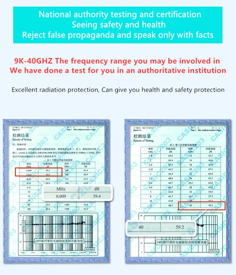 Elettromagnetica radiazione di protezione tappo è adatto per le persone che lavorano lunghe ore o vivono in aree con grandi onde elettromagnetiche. Come ad esempio di computer, stampante, radar di contattare, e senza fili di test personale come bene come la radio, telecomunicazioni, le comunicazioni, sala computer, sala di lavoratori di laboratorio, ecc. Radiazione elettromagnetica di protezione in grado di proteggere contro le radiazioni del computer, WIFI alle radiazioni, il monitoraggio e la radiazione, protezione contro la radiazione della stazione di base, Radiazione del laboratorio e altri tipi di radiazioni. È il prodotti di protezione ideale per l'esercito, banche, comunicazioni, elettricità, scuole, media, la ricerca scientifica e di altre industrie.