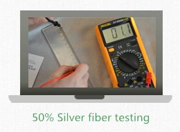 Il multimetro è regolato per il 200 Omega posizione. Quando la penna multimetro è in contatto con il tessuto di prova e la distanza è di 10cm, il valore di resistenza misurato oscilla intorno 0.4 Omega, che indica che la conducibilità del 100% fibra d'argento vestito di radiazione è migliore di quella del 50% fibra d'argento tessuto. Il effetto anti-radiazioni è anche meglio. Può essere visto da la prova che il valore di resistenza di 100% fibra d'argento è relativamente piccolo in la tessuto, in modo che la conducibilità e effetto anti-radiazioni di 100% fibra d'argento sono anche meglio.