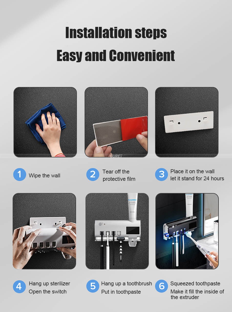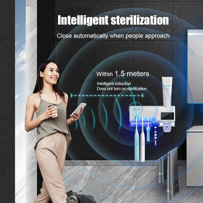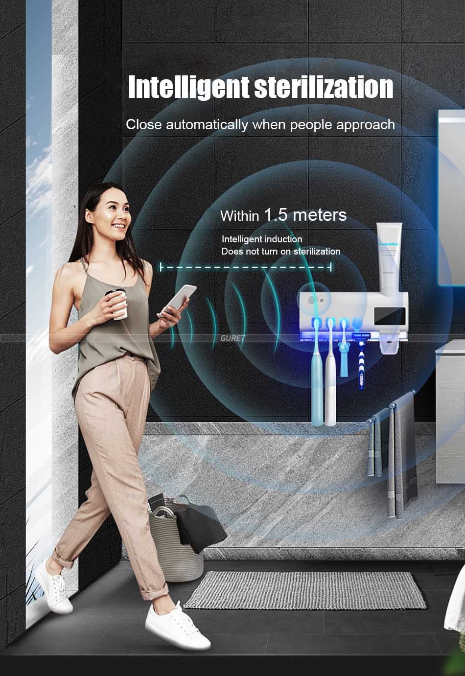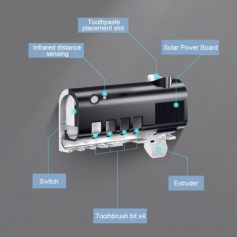 Guret Portaspazzolino Uv A Energia Solare Sterilizzatore Per Spazzolino Da Parete Dispenser Automatico Di Dentifricio Spremiagrumi Accessori Per Il Bagno