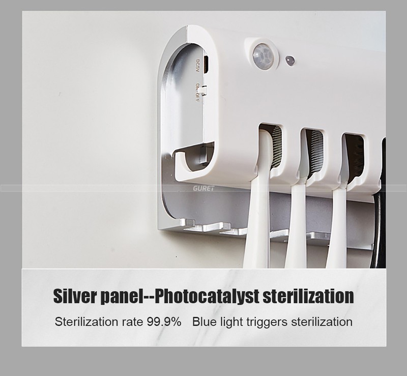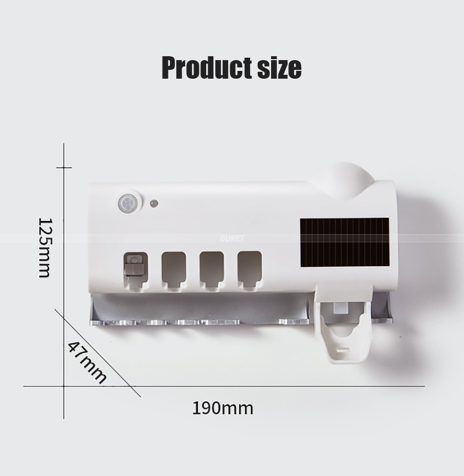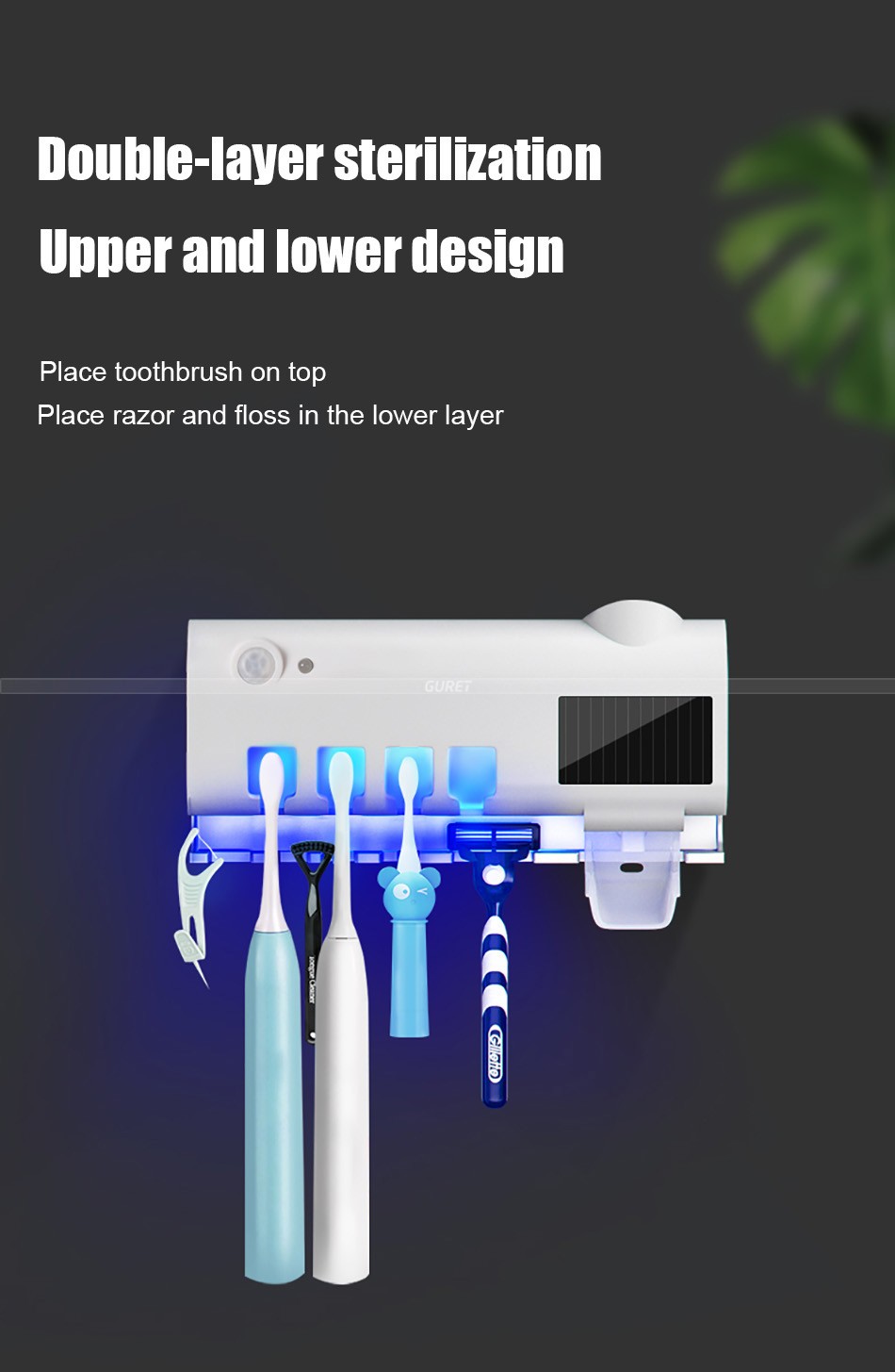 GURET Energia Solare UV Spazzolino Da Denti Supporto A Parete Spazzolino Da Denti Sterilizzatore Dispenser Automatico di Dentifricio Spremi Accessori Per il Bagno