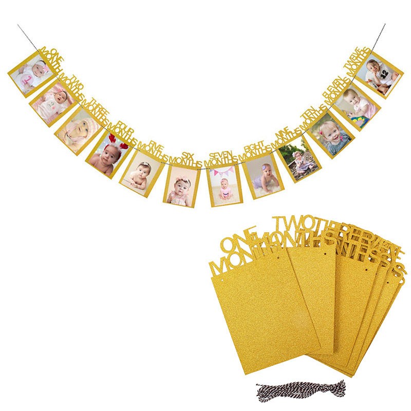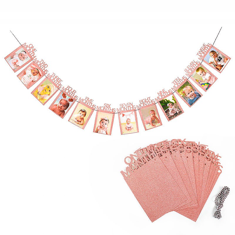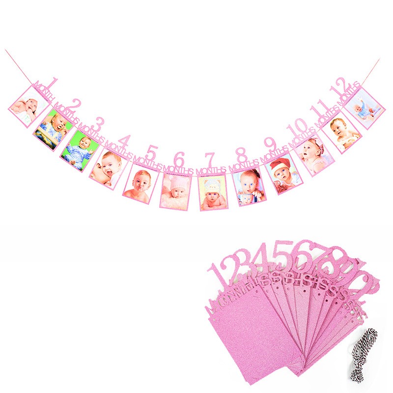 Banner Per Cornice Per Foto Di Buon Compleanno La Prima Festa Di Famiglia Decorazione Per Bambini Baby Boy Girl My 1St One Year 12 Mesi Ghirlanda Neonato