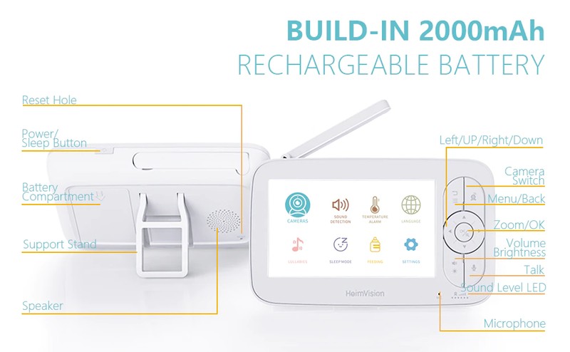 HeimVision HM136 5.0 Pollici Wireless Video Baby Monitor a Colori 720P HD Del Bambino Nanny Videocamera di Sicurezza di Visione Notturna di Controllo Della Temperatura