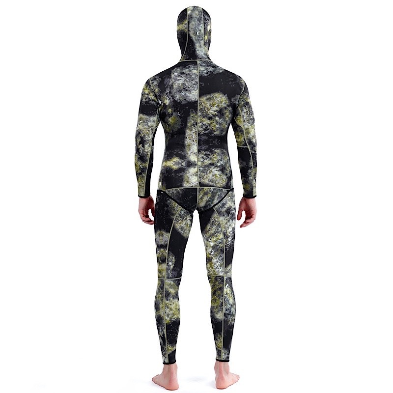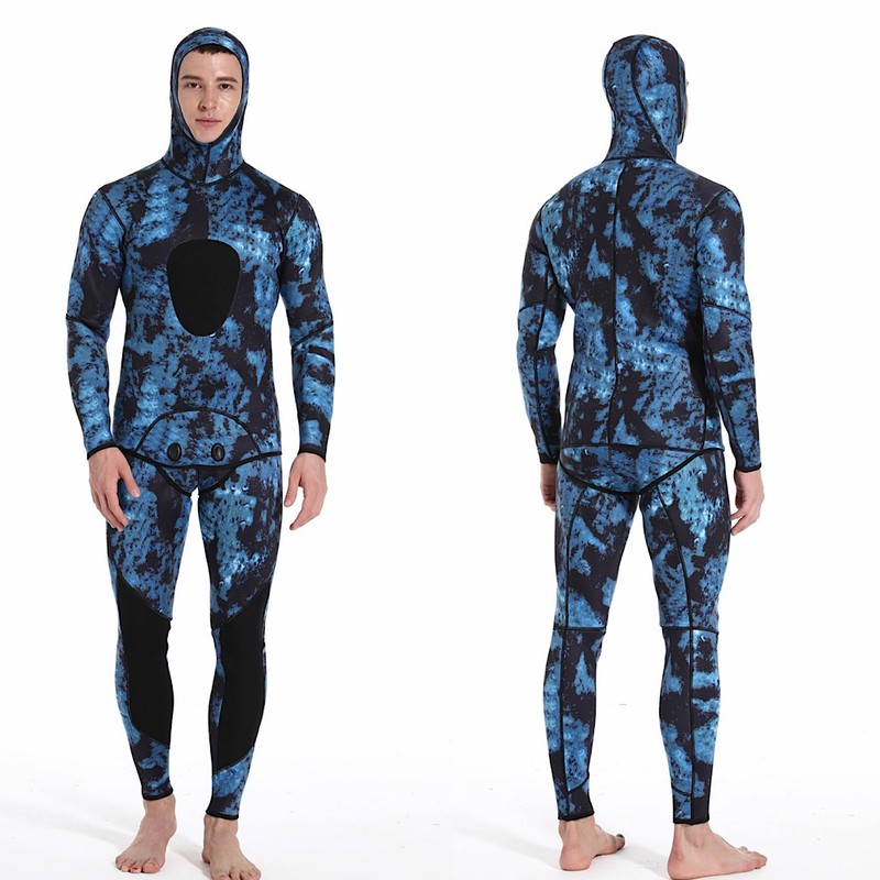 Hot 3Mm Muta Mimetica Manica Lunga Fissione Con Cappuccio 2 Pezzi Di Neoprene Sommergibile Per Uomo Mantenere Caldo Muta Da Sub Impermeabile
