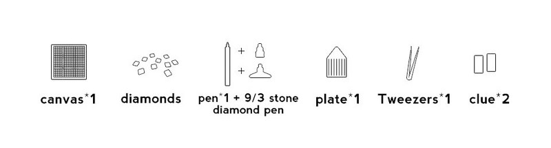 Kit in set: utensili, abbastanza diamanti, tela stampata