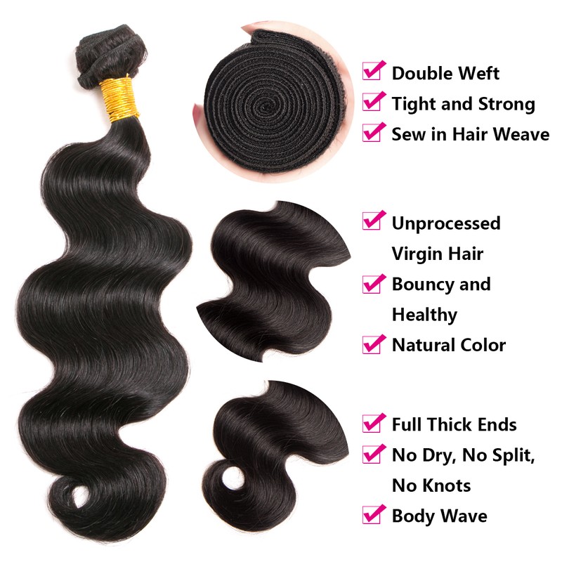 Tipo di capelli umani :: fasci di capelli delle onde del corpo indiano, fasci di tessitura dei capelli umani