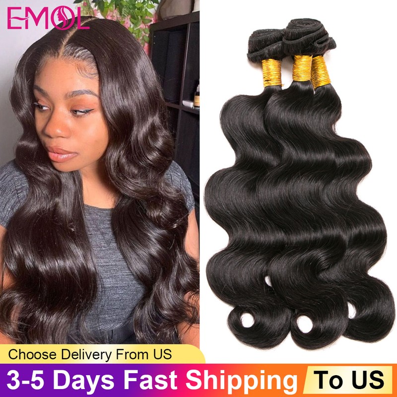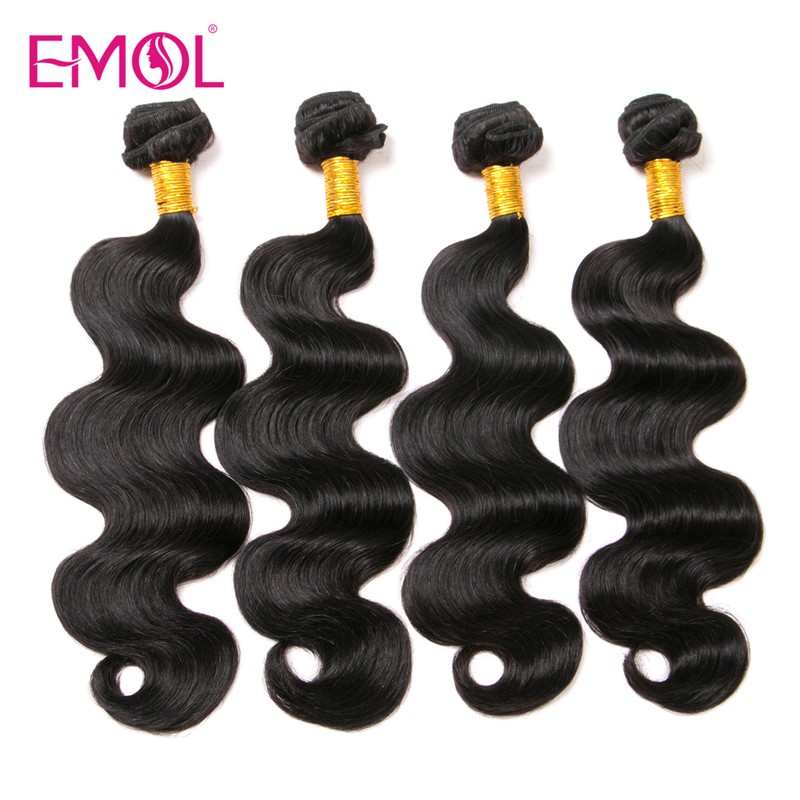 Emol Peruviana Dell'onda Del Corpo Dei Capelli Bundles Fasci Del Tessuto Dei Capelli Umani di Colore Naturale 8-28 Pollici Dei Capelli Non-Remy 1/3/4 pcs