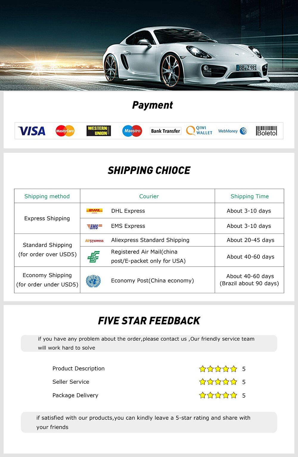 - Spedito in 24 ore tramite spedizione veloce.