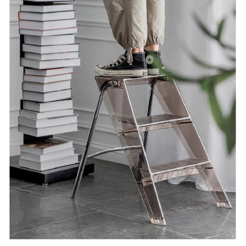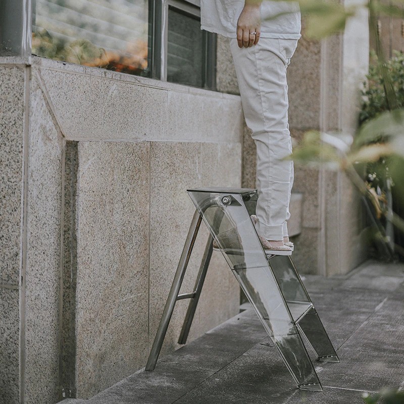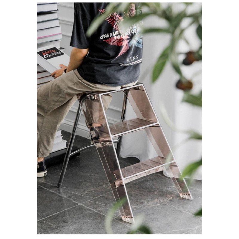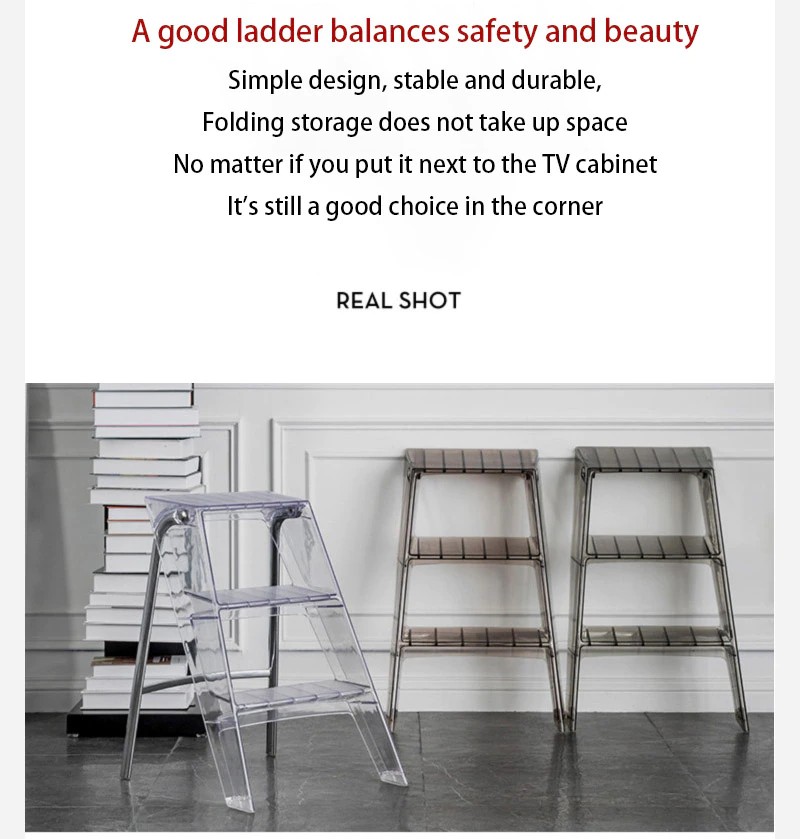 JOYLOVE scala giapponese per uso domestico scala pieghevole telescopica portatile in acrilico trasparente scala in plastica a pedale a tre gradini