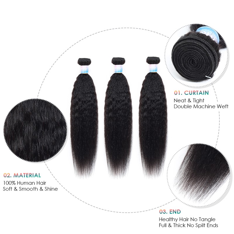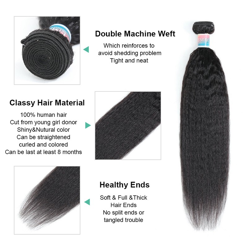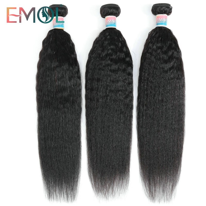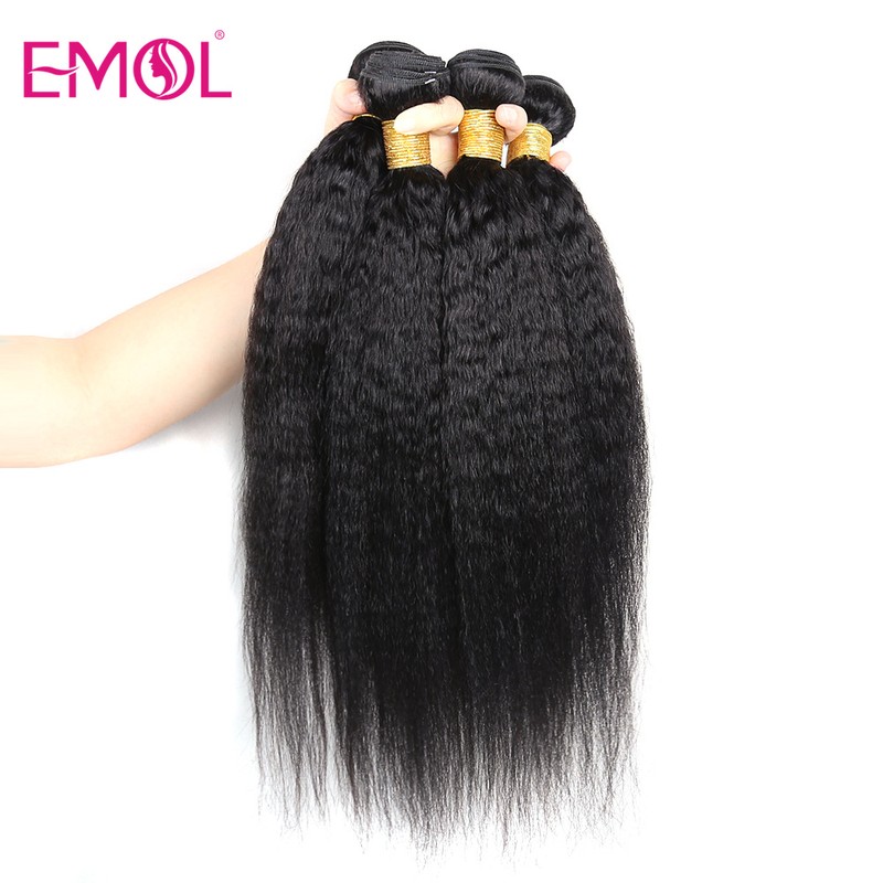 Fasci Di Capelli Lisci Crespi 100% Estensioni Dei Capelli Umani Fornitore All'Ingrosso Yaki Lisci 3/4 Fasci Tessuto Naturale Dei Capelli Emol