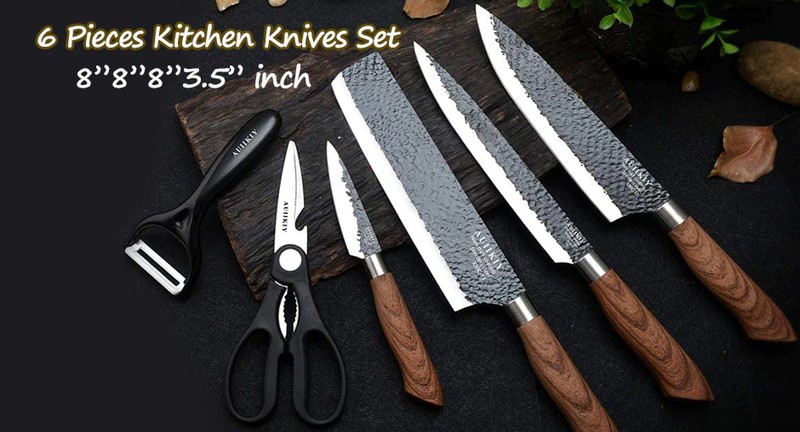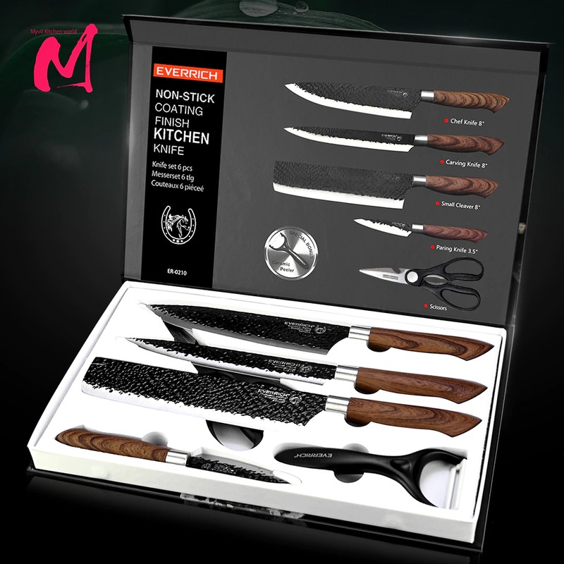 Coltelli Da Cucina Set Coltelli Da Cuoco 6 Set Coltelli Cucina Forgiati In Acciaio Inossidabile Forbici Pelapatate Chef Affettatrice Coltello Da Cucina Custodia Regalo