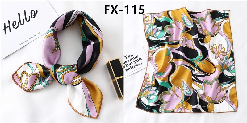 Più recente Sciarpa Di Seta Quadrata Donna Moda Stampa Sciarpe Collo Piccolo Ufficio Signora Fascia Per Capelli Foulard Fazzoletto A Mano Scialle Bandana Femminile