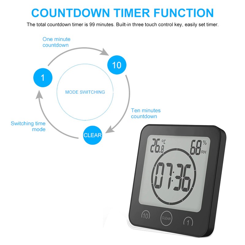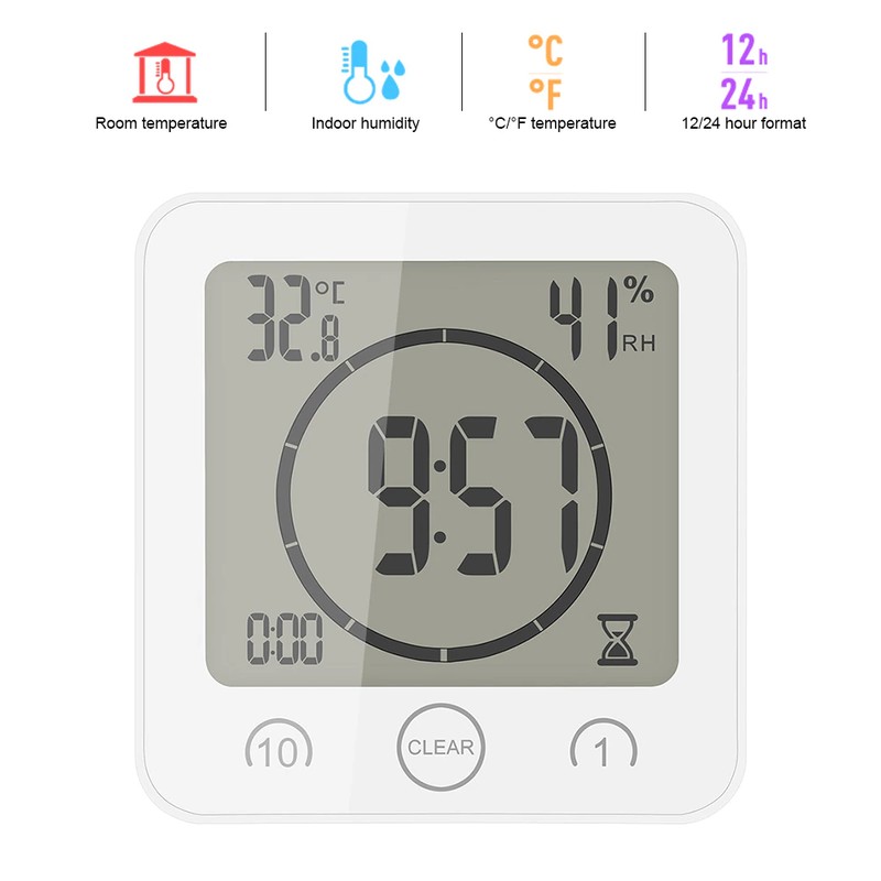 Schermo Lcd Impermeabile Orologio Da Parete Per Bagno Digitale Temperatura Umidità Conto Alla Rovescia Funzione Tempo Lavaggio Doccia Orologi Sospesi Timer