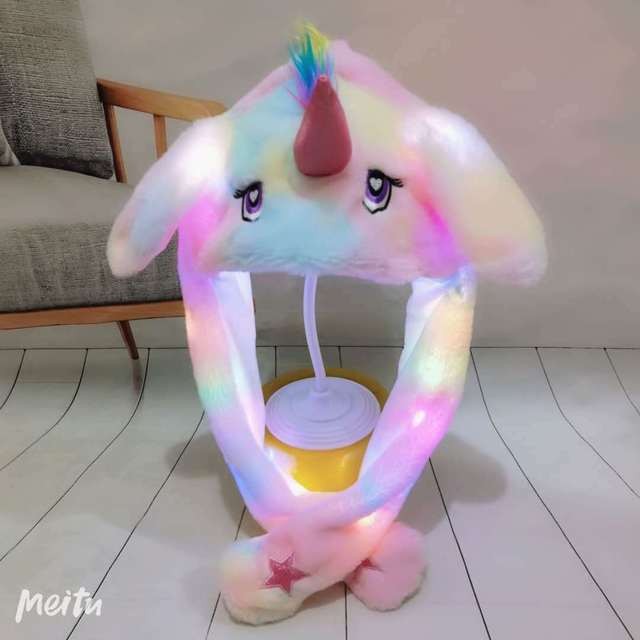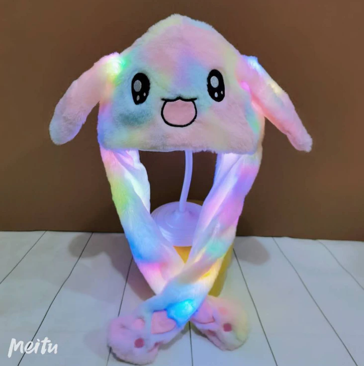 Coniglietto Led Orecchie Mobili Cappello Cartone Animato Peluche Flash Festa Regalo Di Compleanno Luce Airbag Luminoso Cappello Lampeggiante Salto Cappello Per Bambini Adulto