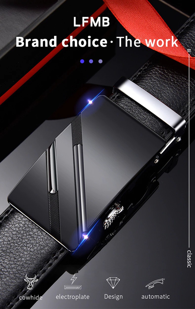[Lfmb] Cintura Da Uomo Di Marca Famosa Cinture In Vera Pelle Di Lusso Di Alta Qualità Per Uomo, Fibbia Automatica In Metallo Maschile Con Cinturino