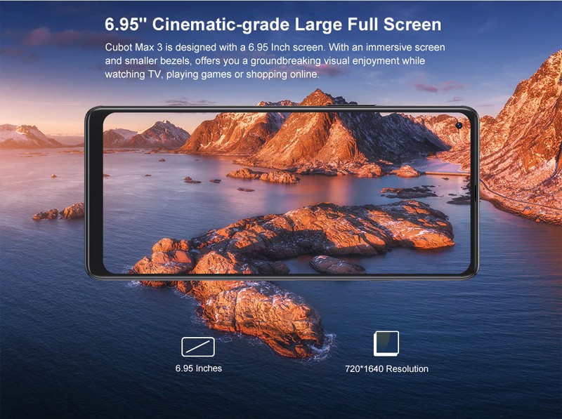 Cubot Max 3 è stato progettato con uno schermo da 6.95 pollici. Un'esperienza di schermo e più piccolo cornici, di offrire innovativo godimento visivo mentre si guarda la TV, giocare, O di shopping on-line.