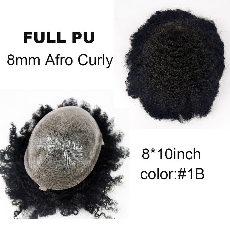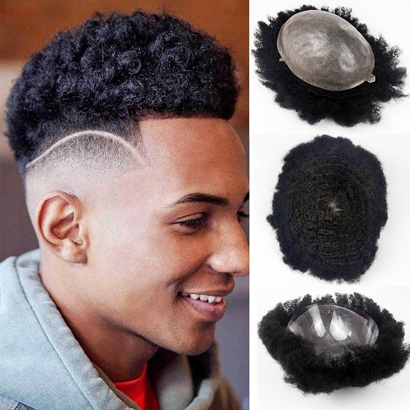 Parrucca Da Uomo Toupee Capelli Neri 100% Parrucche Per Capelli Umani Remy Sostituzione Del Sistema Di Capelli Hairpiece Da Uomo Full Skin Toupee 8X10 Pollici Parrucca Riccia Da Uomo