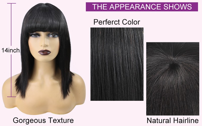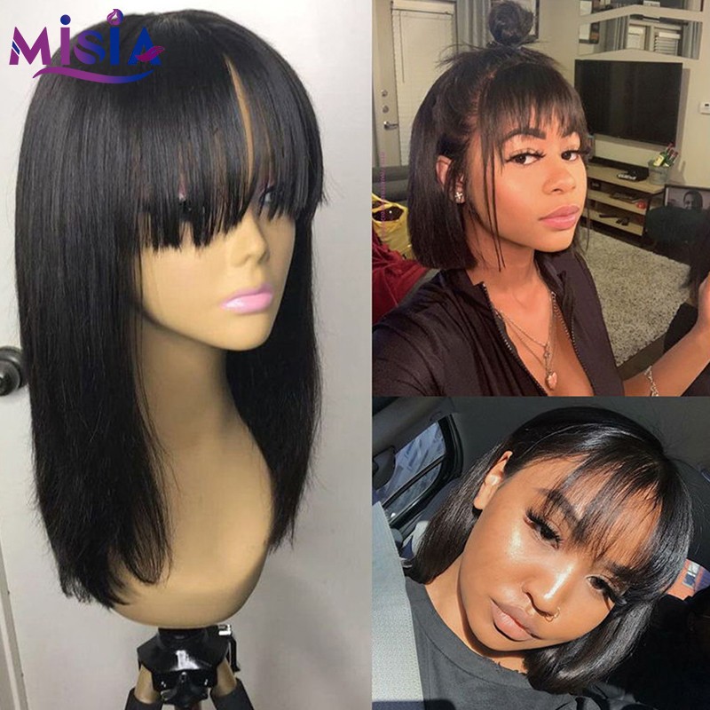 Parrucche Diritte Per Capelli Umani Misia Bob Con Parrucche Piene Fatte A Macchina Bang Parrucche Brasiliane Per Capelli Umani Remy Per Donna 14 Pollici