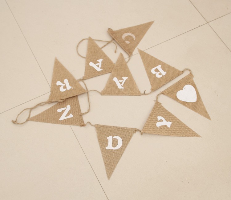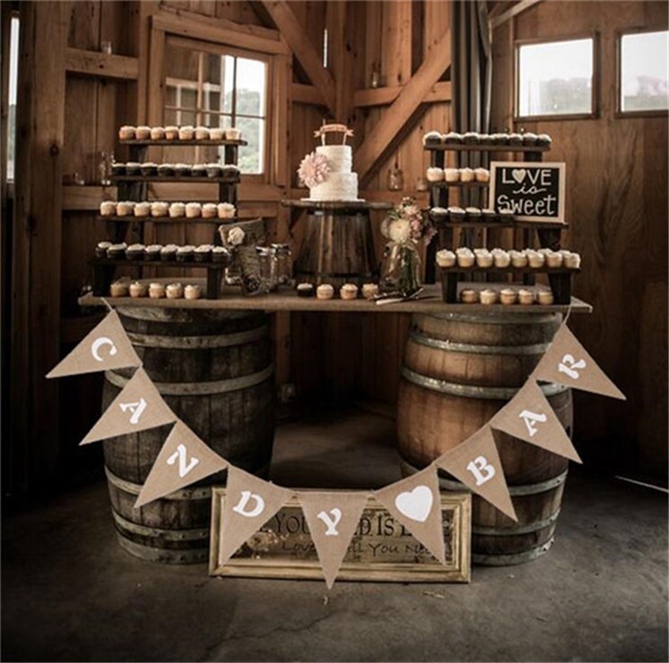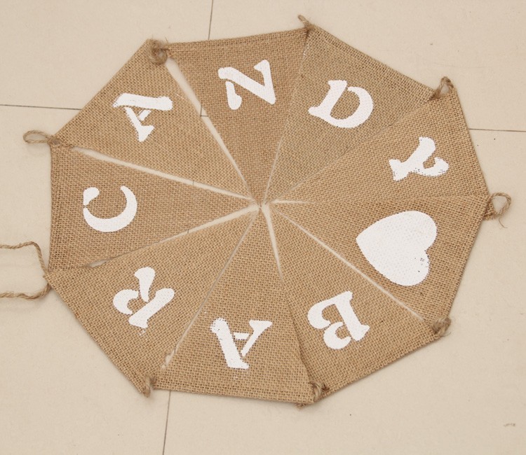 Nuovo Della Tela Di Iuta Tessuto Di Iuta Rustico Tela Bunting Banner Banner Bandiere Candy Bar Dell'Annata Del Partito Decorazione Di Cerimonia Nuziale Aa8040