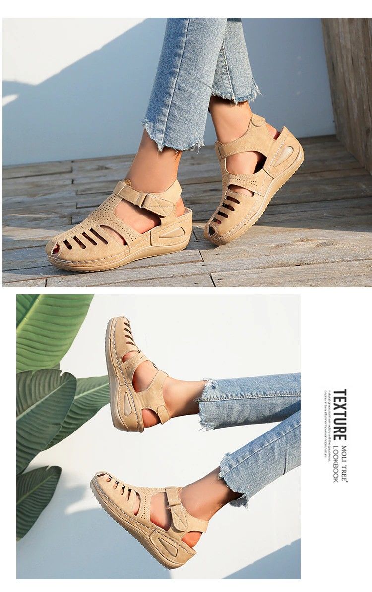 Più nuovo Nuovi Sandali Da Donna Sandali Con Zeppa Vintage Fibbia Cucito Casual Scarpe Da Donna Piattaforma Da Donna Femminile Sandali Retrò Taglie Forti