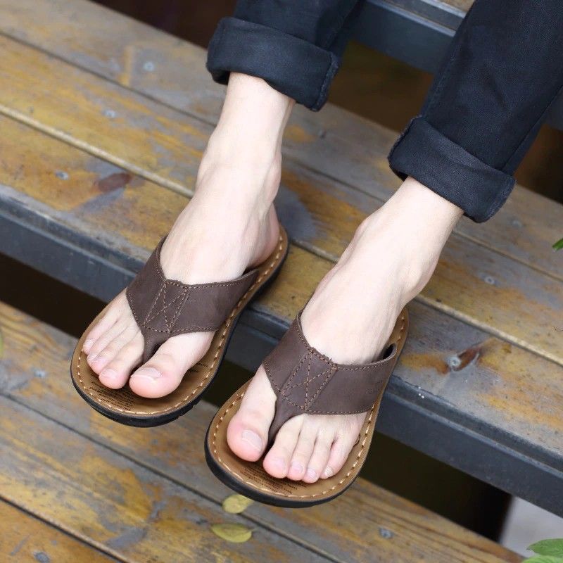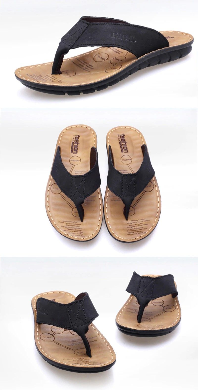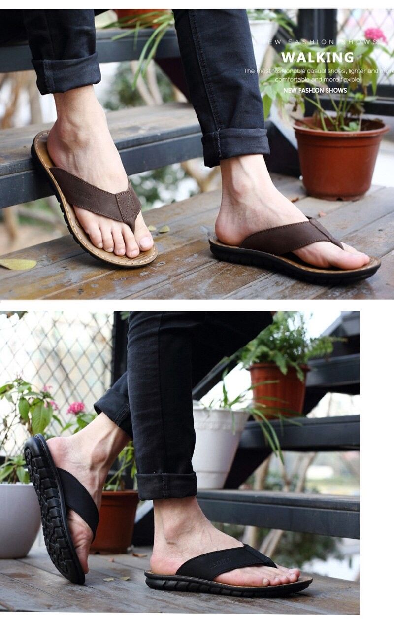 Più nuovo Scarpe Estive Pantofole Da Uomo Pantofole Da Spiaggia In Vera Pelle Sandali Infradito Uomo Scarpe Estive Infradito Da Uomo A673