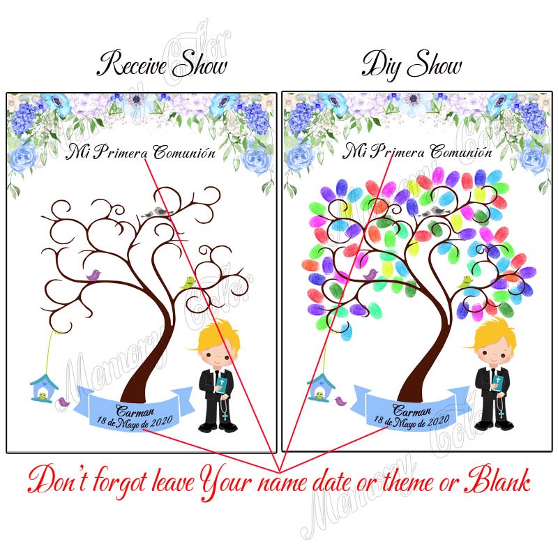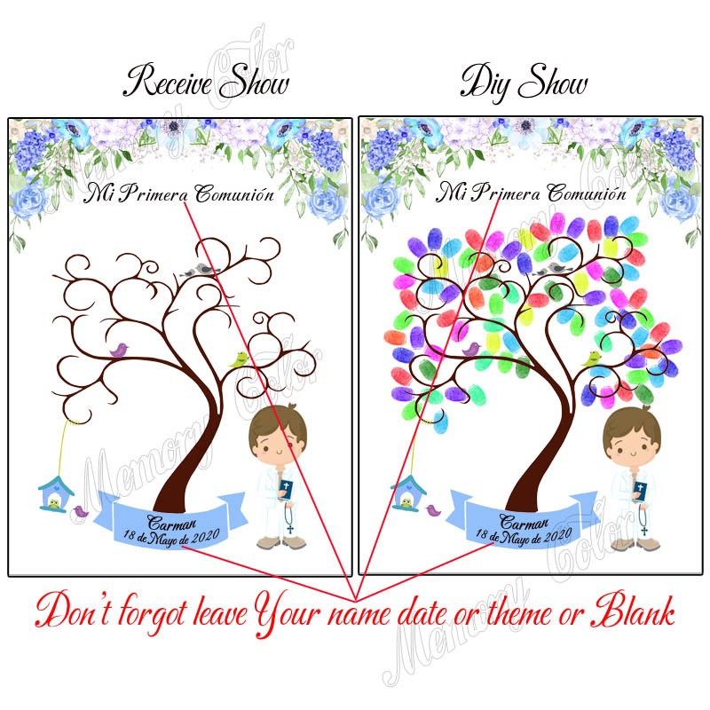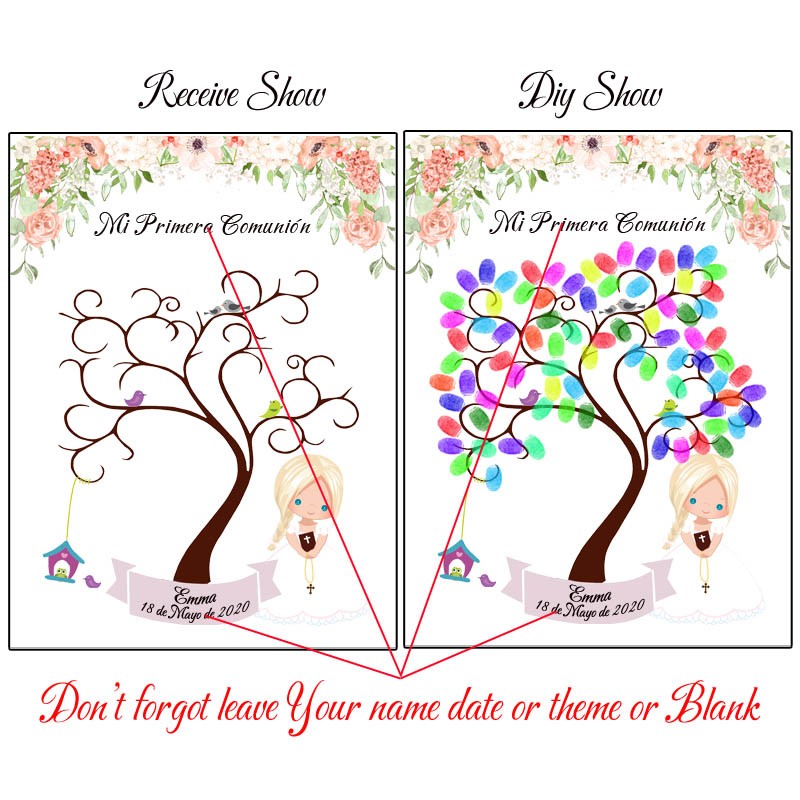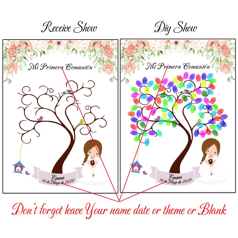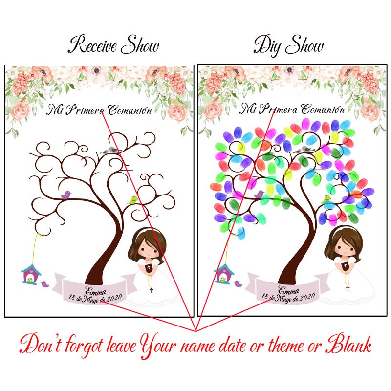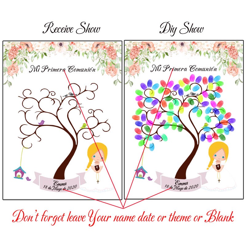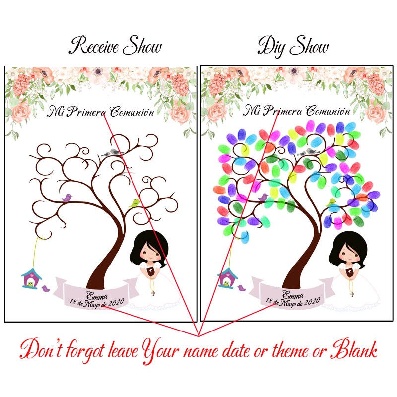 • Nome Tema Personalizzato Data Spagnolo Mi Primera Comunión Per Bambini Prima Comunione Souvenir Impronta Digitale Pittura Fai Da Te (Senza Cornice)