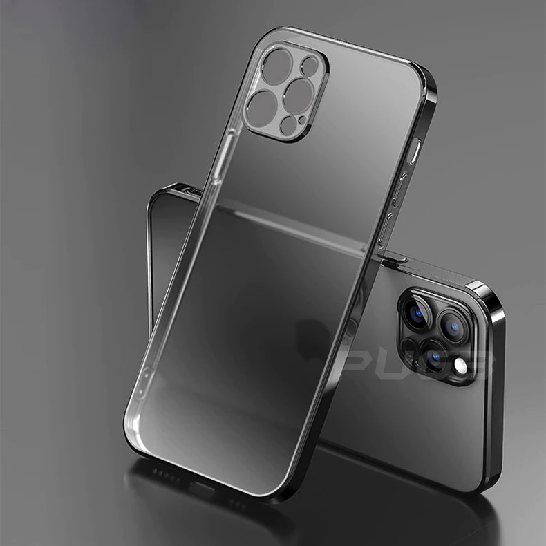 Di lusso di Placcatura Cornice di Piazza Opaca Molle della Cassa Del Silicone per il iPhone 11 12 13 Pro Max Mini XR X XS 7 8 più SE 2020 Antiurto Coperchio Trasparente