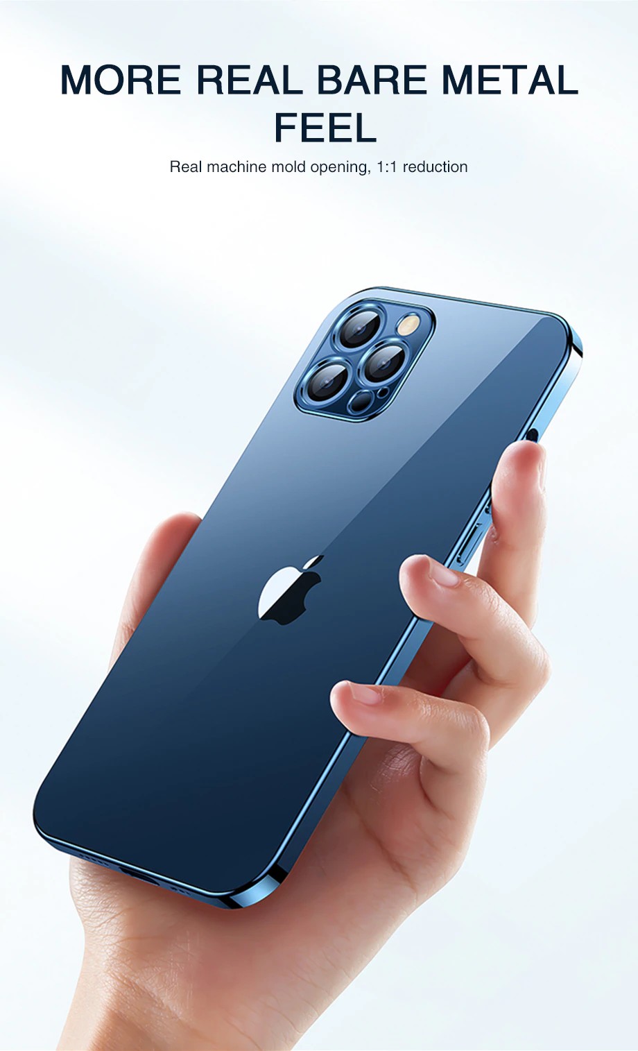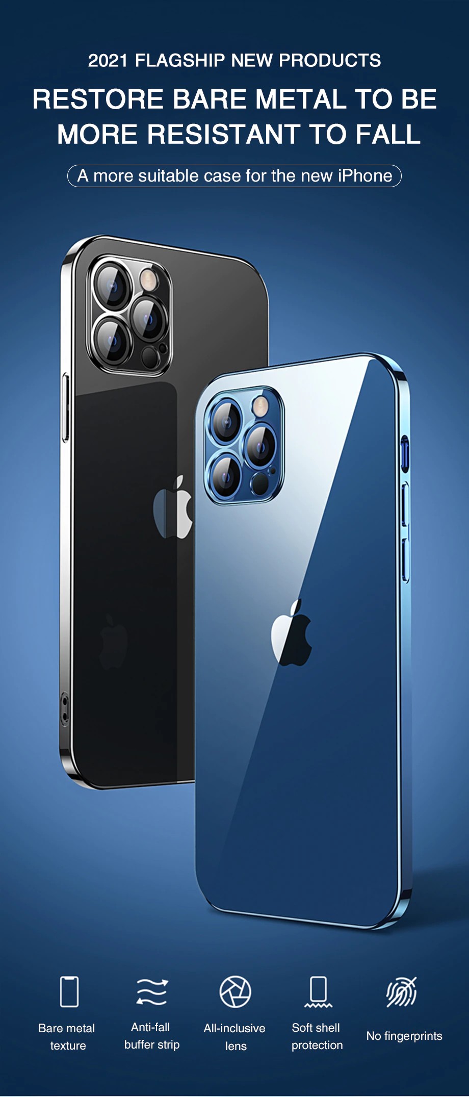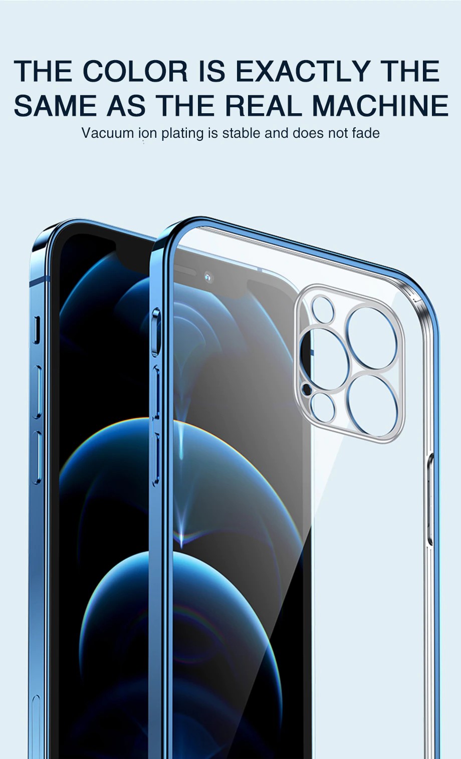 Custodia Trasparente In Silicone Con Cornice Quadrata Placcata Di Lusso Per Iphone 11 12 13 Pro Max Mini X Xr 7 8 Plus Se Più recente Cover Posteriore Trasparente