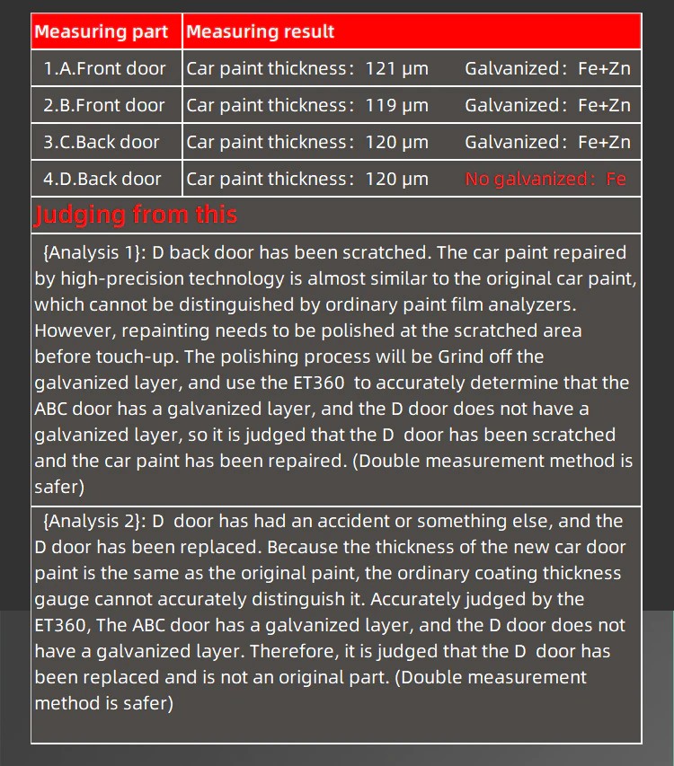 Lo spessimetro viene utilizzato per misurare lo spessore della lamiera placcata e rivestita su metallo, ad esempio vernice/smalto/cromo su acciaio, vernice e rivestimento anodizzato su alluminio/rame.