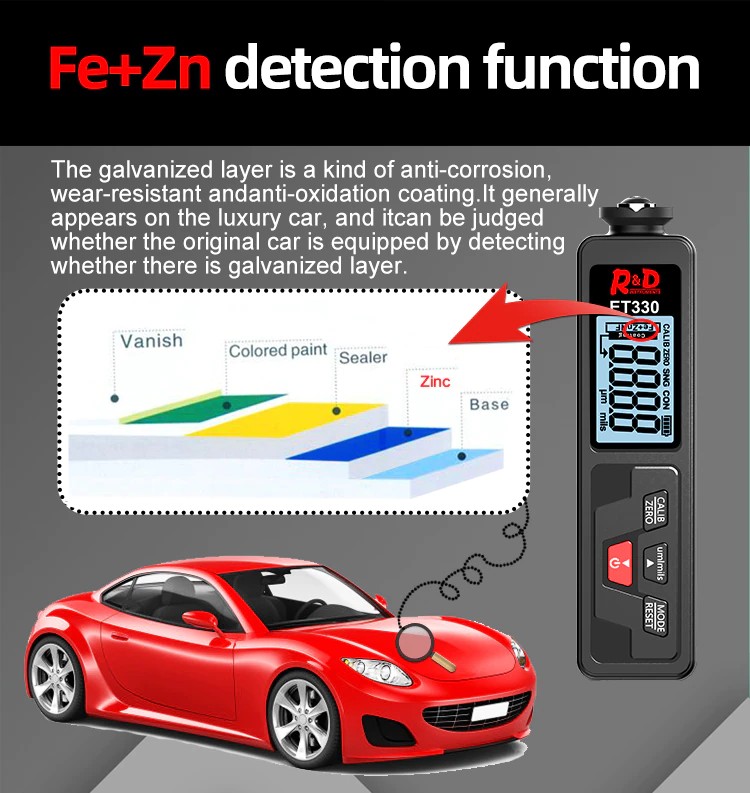 R &Amp; D Et330 + Zn Calibro Di Spessore Per Vernice Per Auto Calibro Di Spessore Rivestimento In Metallo Placcato Auto 0-1500Um Fe &Amp; Nfe Tester Per Rivestimento