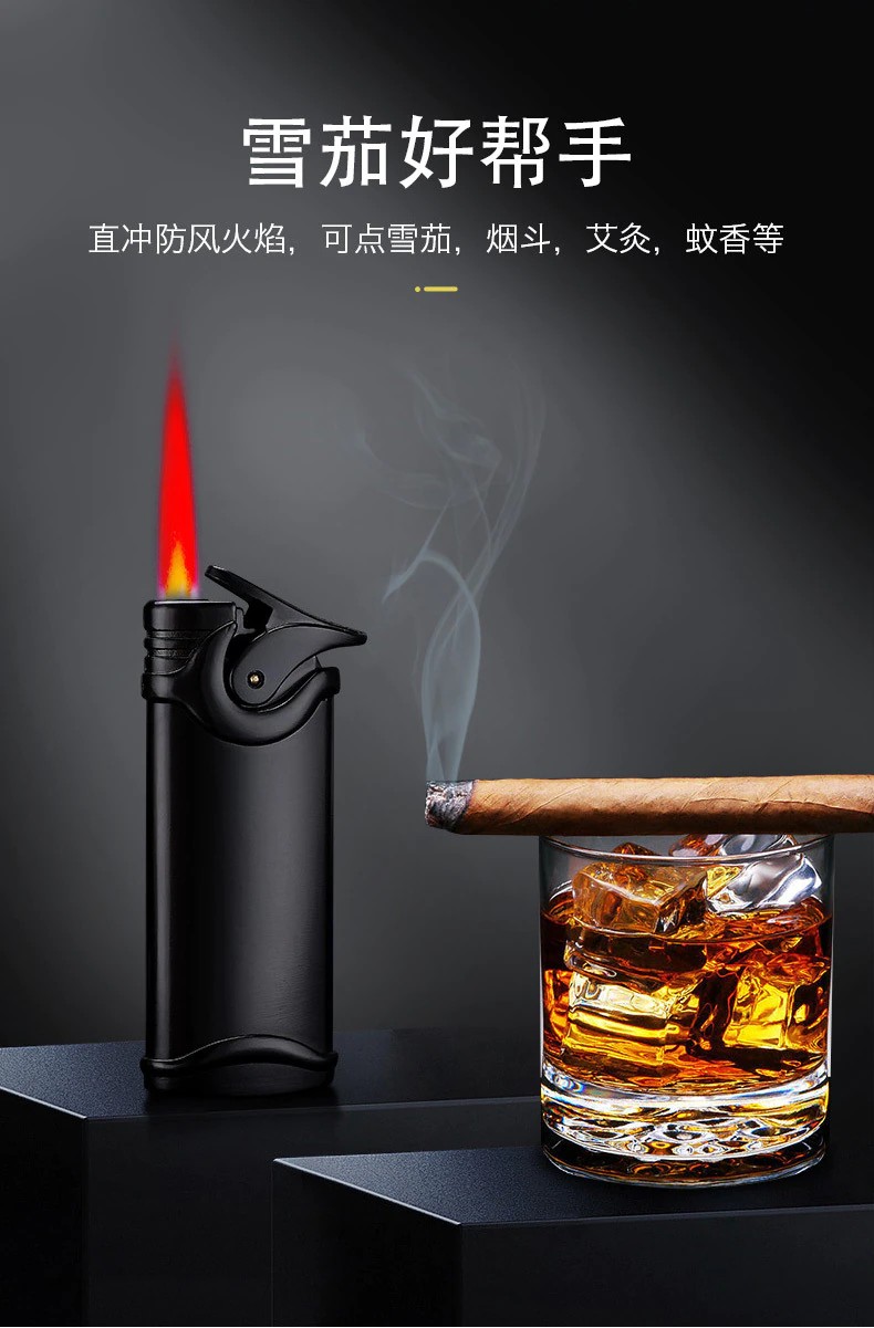 Rosso Fiamma Butano Accendino Antivento Personalità Creativa Del Metallo Della Torcia Accendisigari Fresco Accendino Sigaro Accendino Torcia Jet Gas