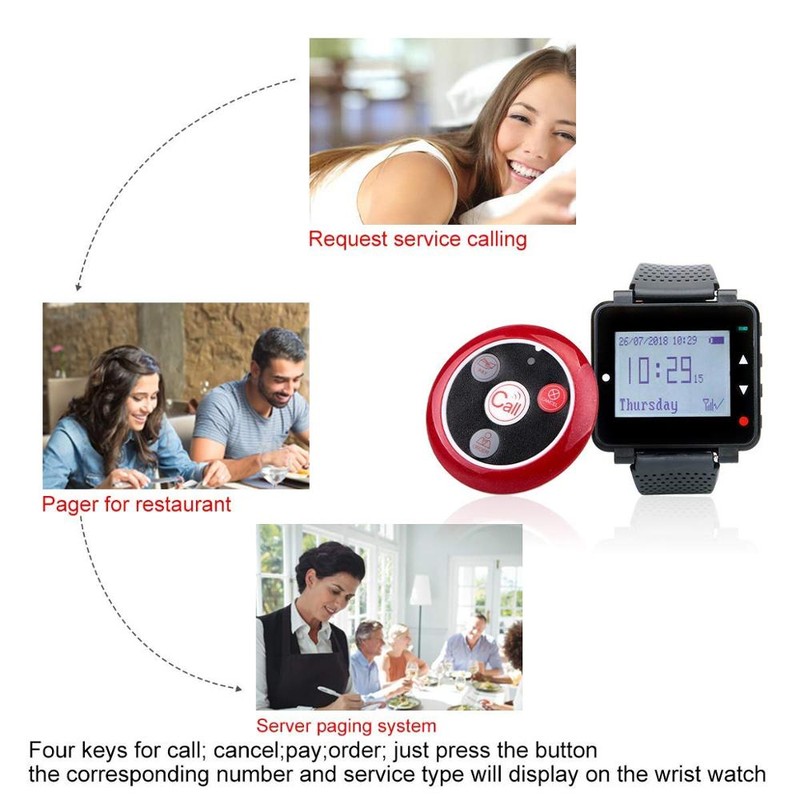 Retekess Restaurant Cercapersone Narghilè Sistema Di Chiamata Cameriere Wireless 4 Pezzi T128 Ricevitore Orologio + 30 Pezzi T117 Pulsante Di Chiamata Cafe Clinica