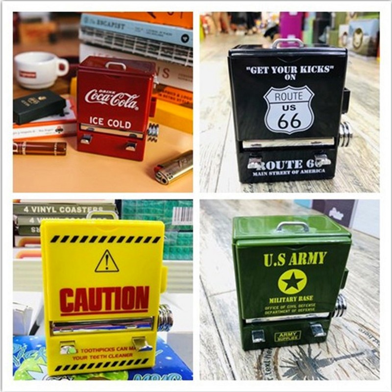 Scatola di Stuzzicadenti di plastica Americano Creativo Retrò Cola Rosso Nero Distributore automatico Stuzzicadenti Titolare Della Decorazione Della Casa Forniture di Stoccaggio