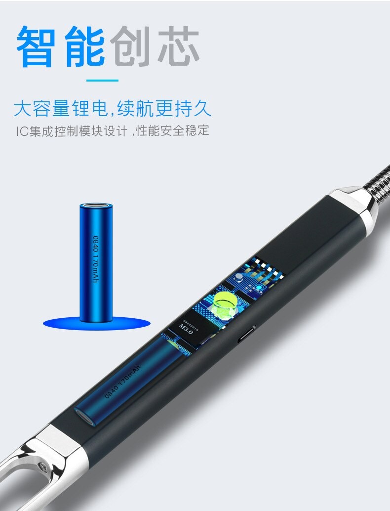 Accendino A Torcia In Metallo Ad Arco Girevole A 360 ° Illuminazione A Led Tipo C Ricarica Accenditore Senza Fiamma Portatile Per Campeggio Sopravvivenza Bbq Cottura