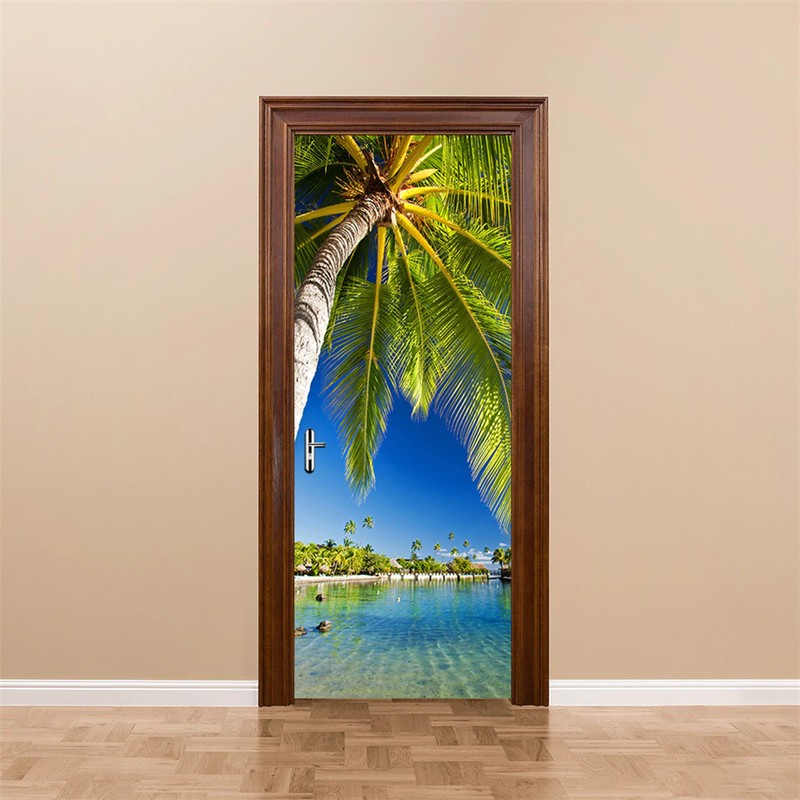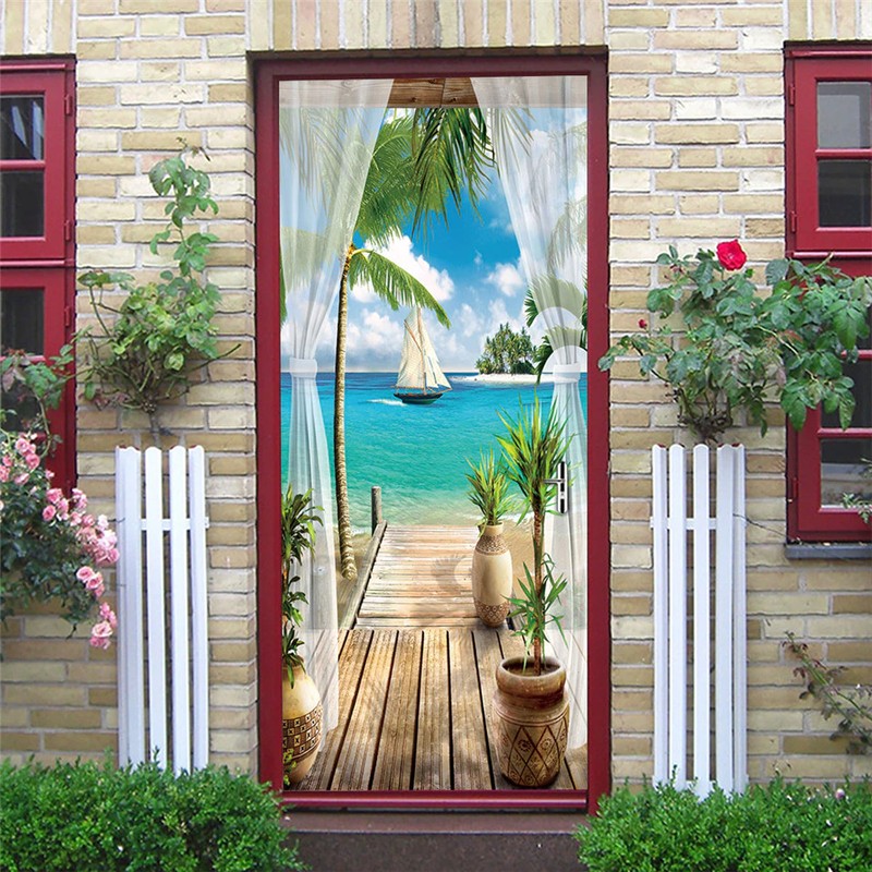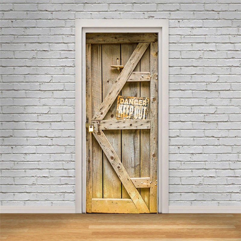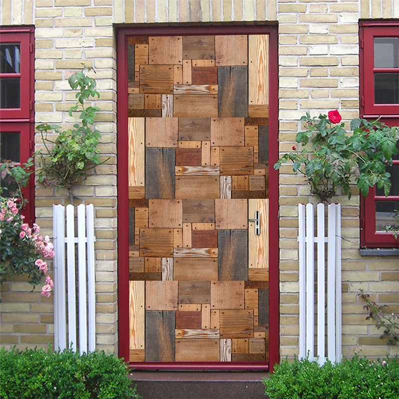 Scenario Adesivo Per Porte Venatura Del Legno Adesivo In Vinile Impermeabile Carta Da Parati Rimovibile Poster Decorazione Della Stanza Decalcomanie Murali Adesivo Porta