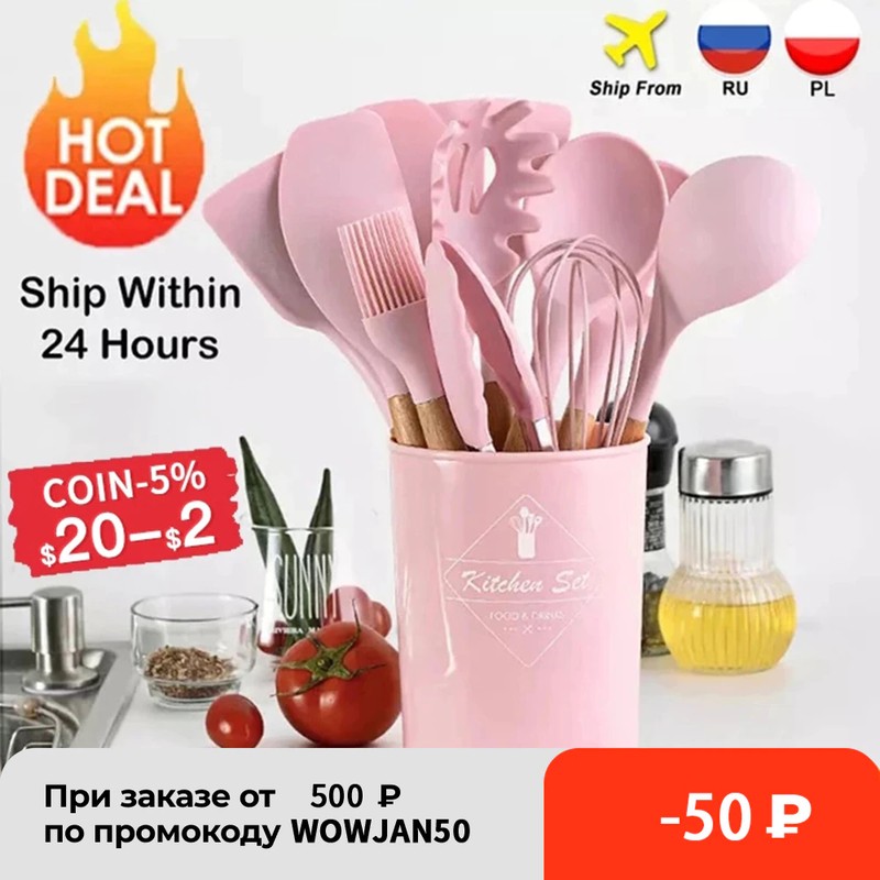 Utensili Da Cucina In Silicone Set Di Utensili Da Cucina Pentole Antiaderenti Spatola Pala Frullino Per Le Uova Manico In Legno Set Di Utensili Da Cucina