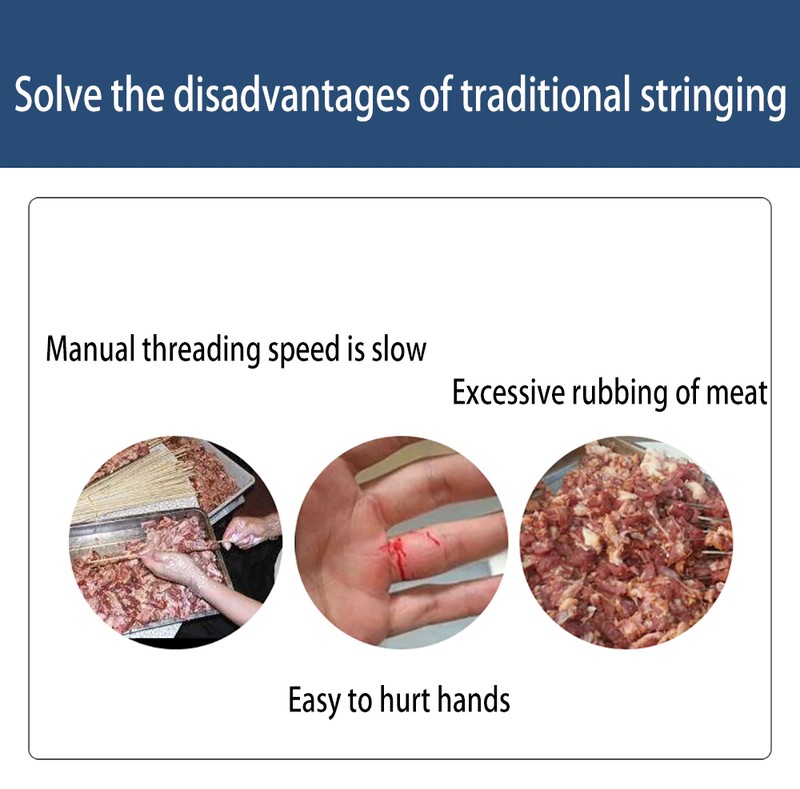 * 3. Funzionamento conveniente: semplici passi, senza infortunio al dito, senza sforzo, semplice a base di carne filettatura passo infine tagli la carne nello slot. Premendo la maniglia si pierce i fori su entrambi i lati del bastone. Aprire la maniglia e togliere lo spiedo.