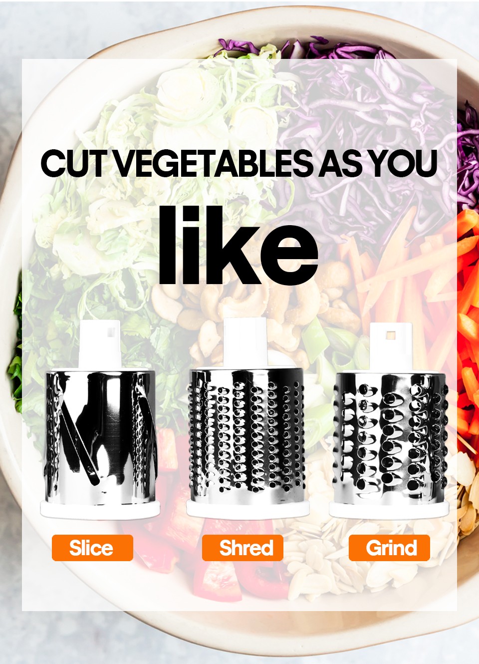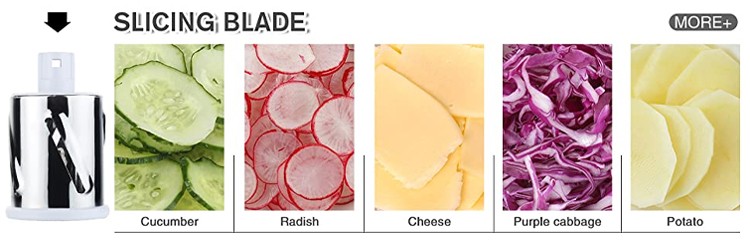 Grande per molti ingredienti: Abbiamo fatto un sacco di ingredienti, come ad esempio: patate, cavolo, cetrioli, zucchine, molti tipi di ravanello, carota, molti tipi di dado, formaggio Mozzarella, aglio, barbabietole e così via, tutti questi sono griglia molto agevolmente.