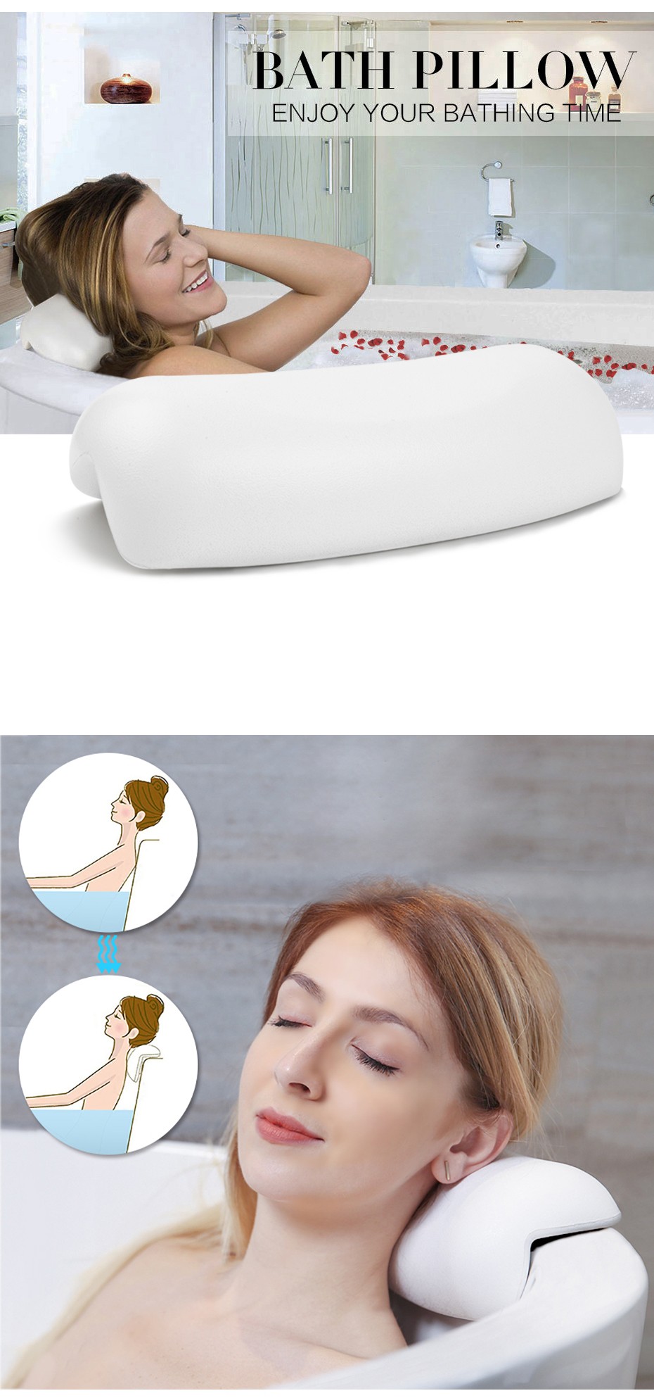 UN costume da bagno è un must per voi di avere un rilassarsi dopo un lungo periodo di tempo stanco del lavoro durante il giorno! Il nostro cuscino da bagno sarà un grande aiuto per il vostro bagno, È molto morbido per voi a fare affidamento su e hanno un riposo, perfettamente per proteggere il collo dal male del disco vasca da bagno e ti fanno anjoy il vostro bagno tempo liberamente!