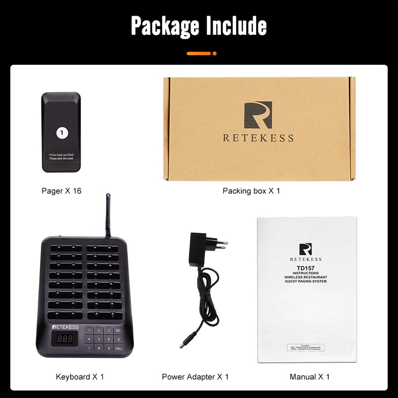 RETEKESS TD157 ristorante pager sistema di chiamata senza fili 16 coaster beeper ricevitore per il caffè food court clinica chiesa nursey salone di bellezza