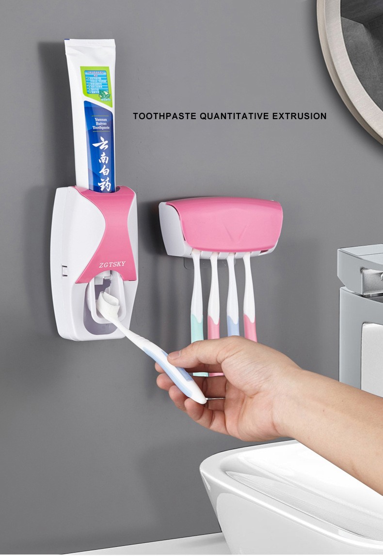 Portaspazzolino Distributore Automatico Di Dentifricio Set Antipolvere Appiccicoso Aspirazione A Parete Dentifricio Squeezer Per Il Bagno