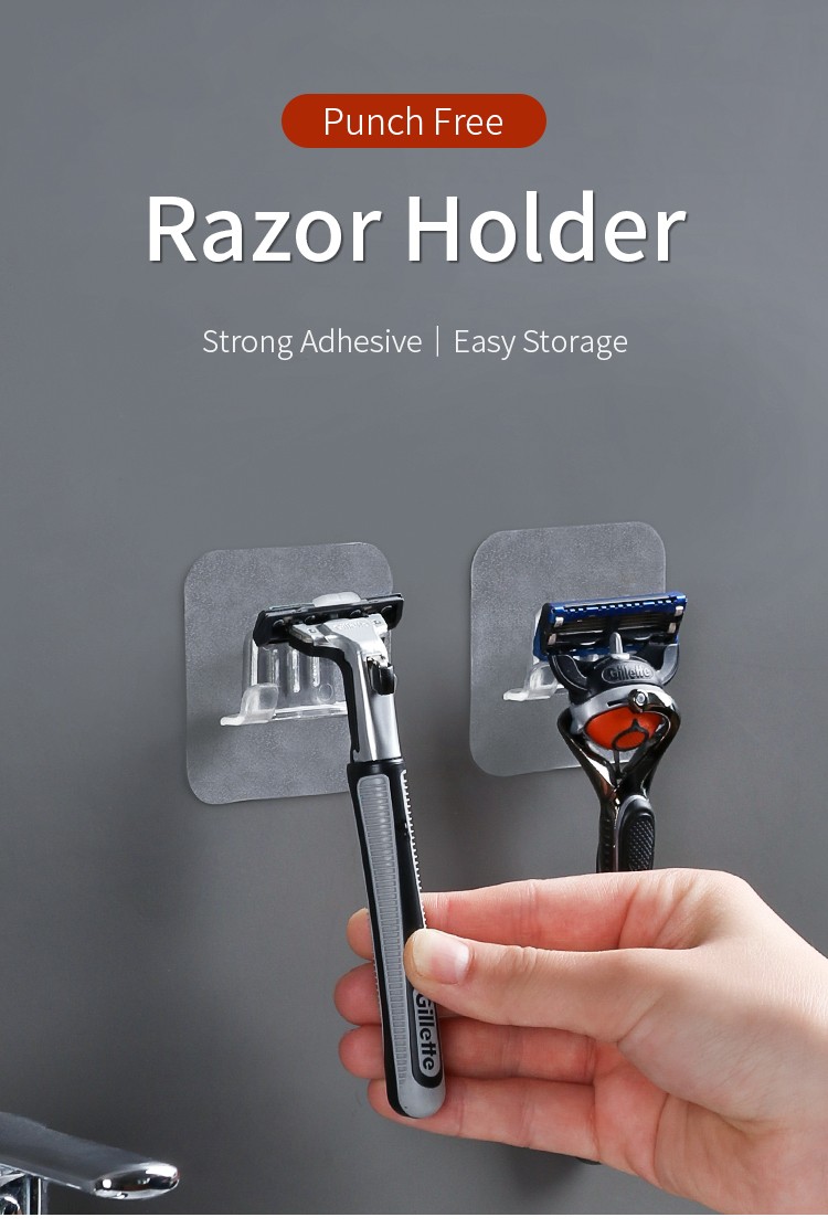Materiale In Pvc Trasparente Supporto Per Rasoio Impermeabile Punch Da Parete Rasoio Da Uomo Gratuito Gancio Di Stoccaggio Accessori Da Bagno Per Cucina
