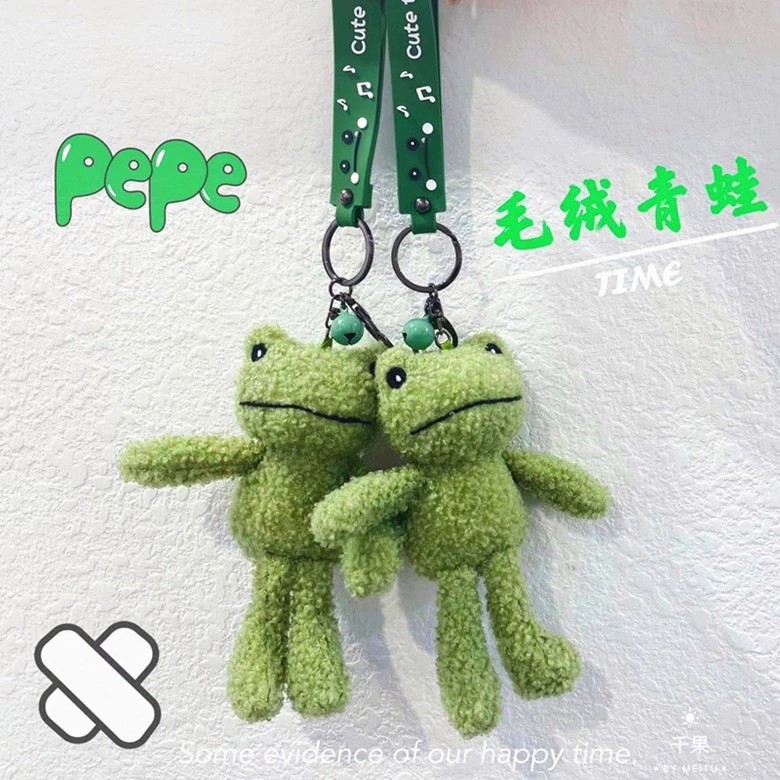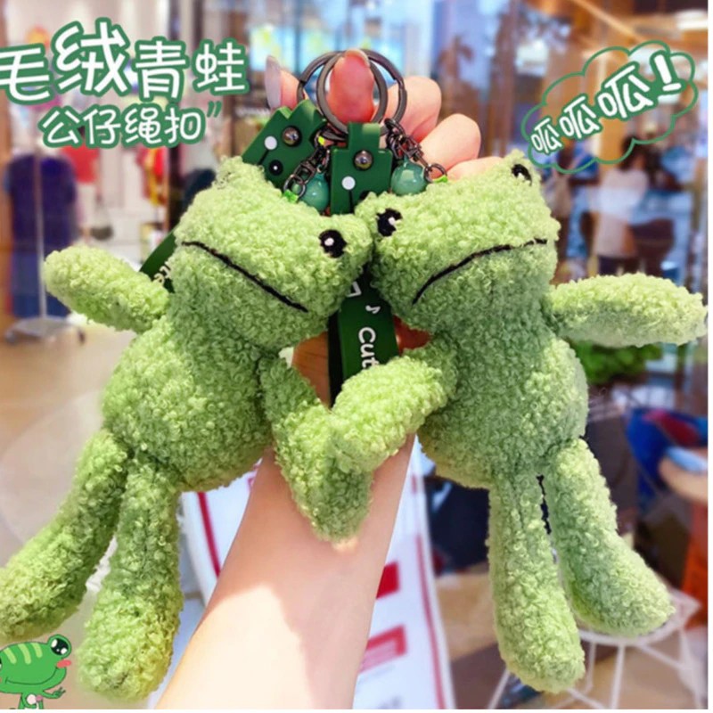 Brutto Viso Sorridente Rana Verde Peluche Portachiavi Ciondolo Personalizzato Moda Borsa Ornamenti Portachiavi Cordino Per Chiavi