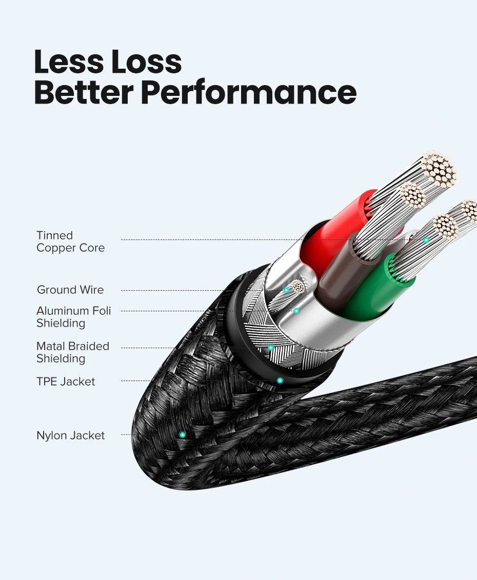 Con il corpo in alluminio e nylon intrecciato cavo, cavo non solo rimanere groviglio-libero, ma anche abbastanza flessibile per essere avvolto e mettere in un sacchetto.