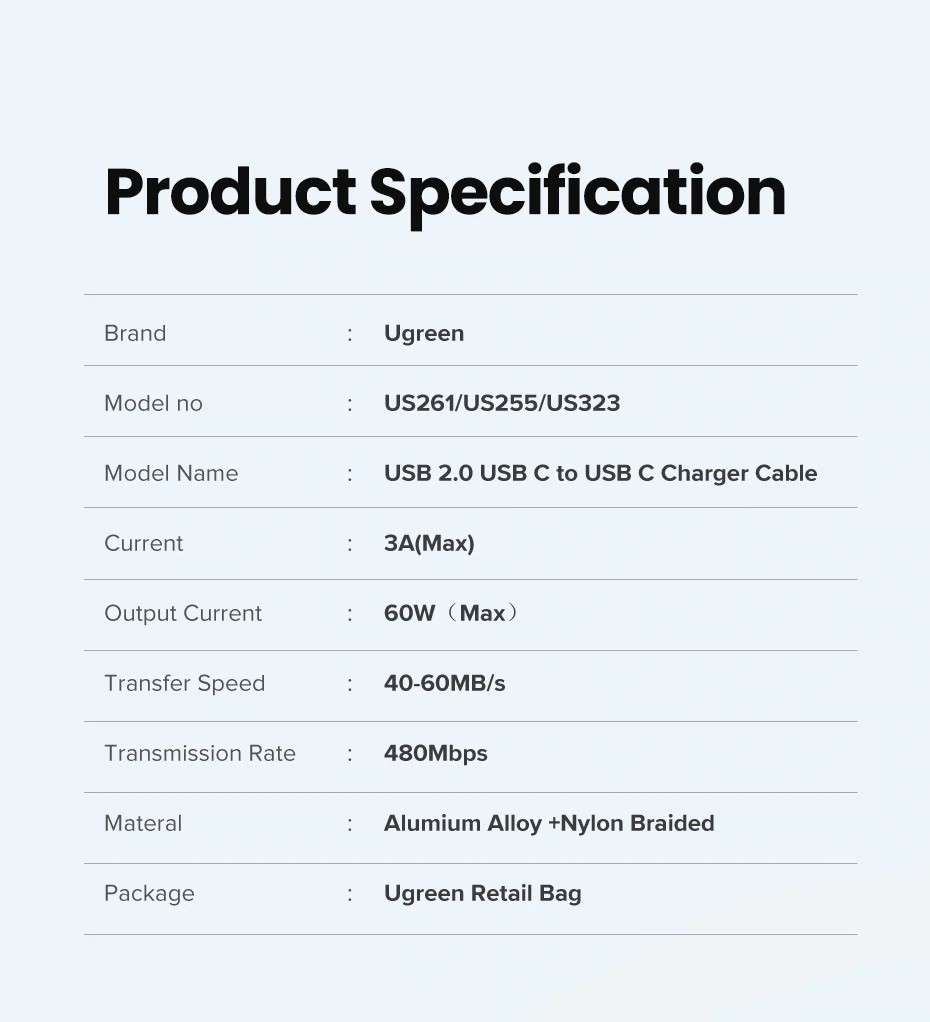 Confrontare Ugreen USB C a USB C PD Cavo