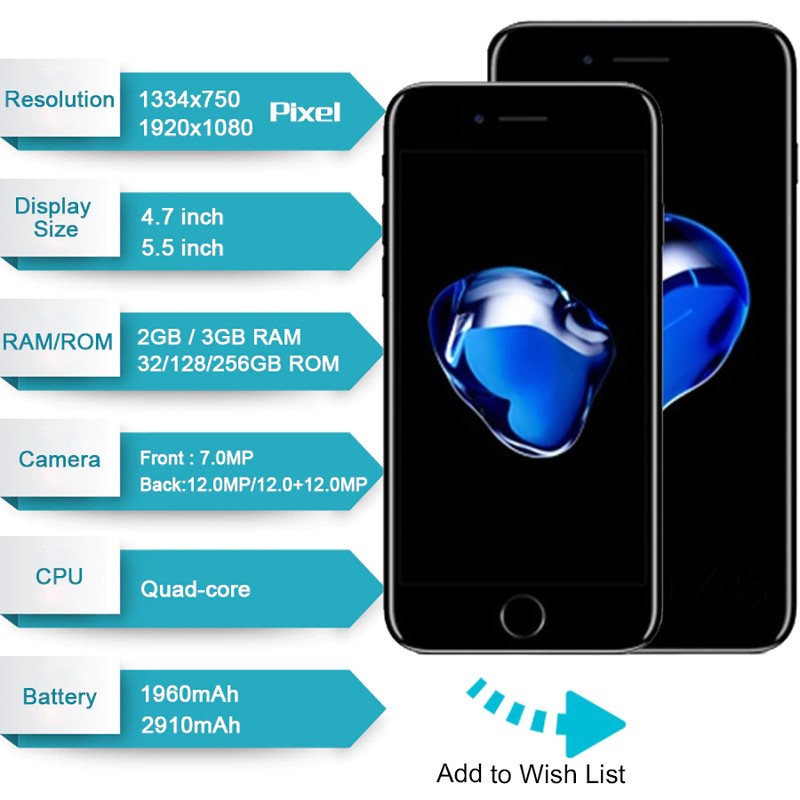 Telefono Cellulare Sbloccato Apple Iphone 7 4G Lte 32/128Gb/256Gb Ios 12.0Mp Fotocamera Quad-Core Fingerprint 12Mp Iphone7