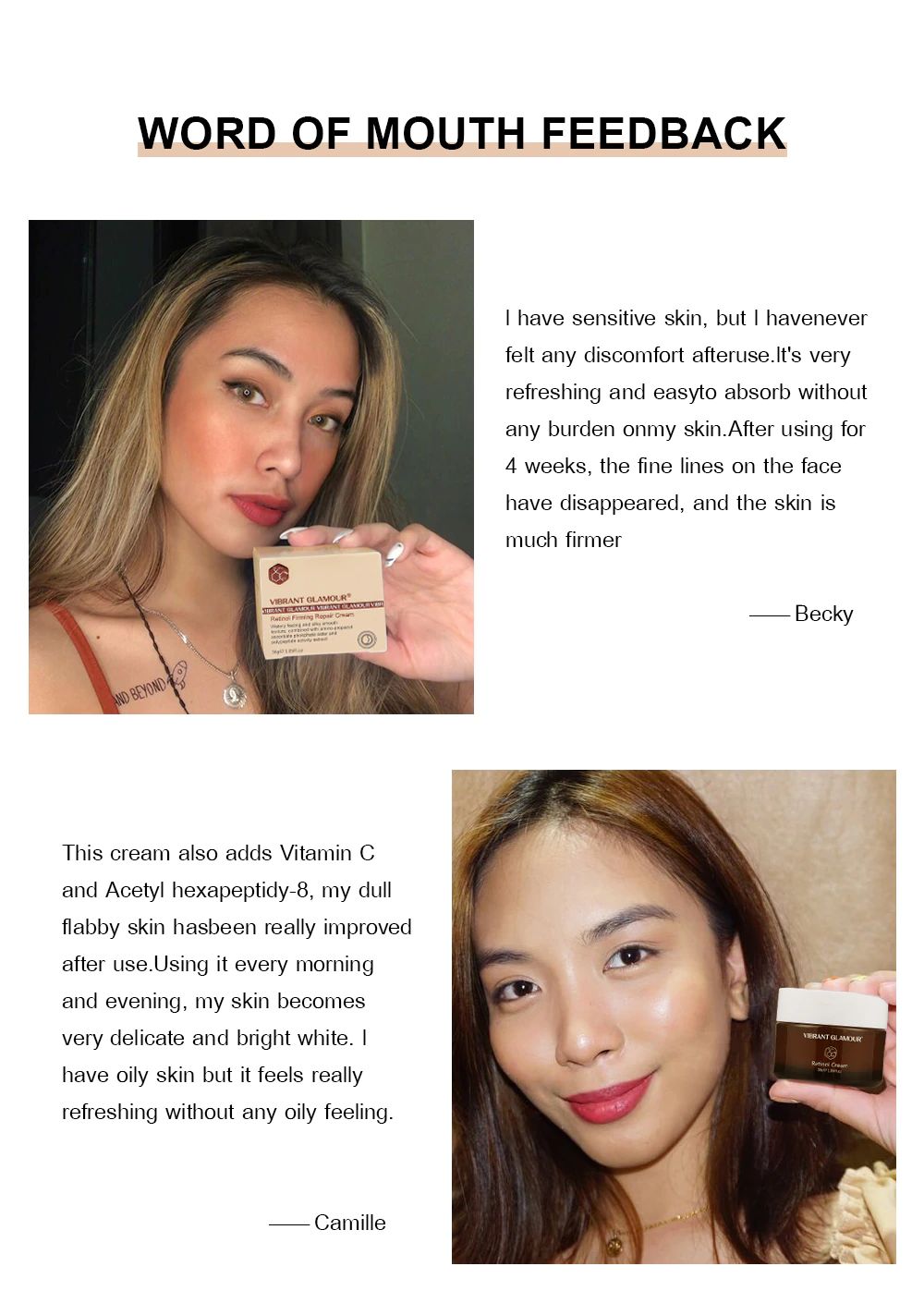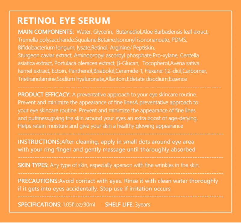 EFFICAC Y: Acquoso sensazione e liscia come la seta texture, in combinazione con amino-propanolo ascorbate fosfato ester e polipeptide attività, estratto di Aggiungere strati di sostanze nutritive per la pelle, equilibrio di umidità della pelle e olio, Con Retinolo retinyl estere Profondamente nutre e riempie la pelle, Migliorare la viso linee sottili, ottusità, secchezza e altri problemi della pelle, Ringiovanire la pelle con fermezza e birght giovanile e idratante Guardare