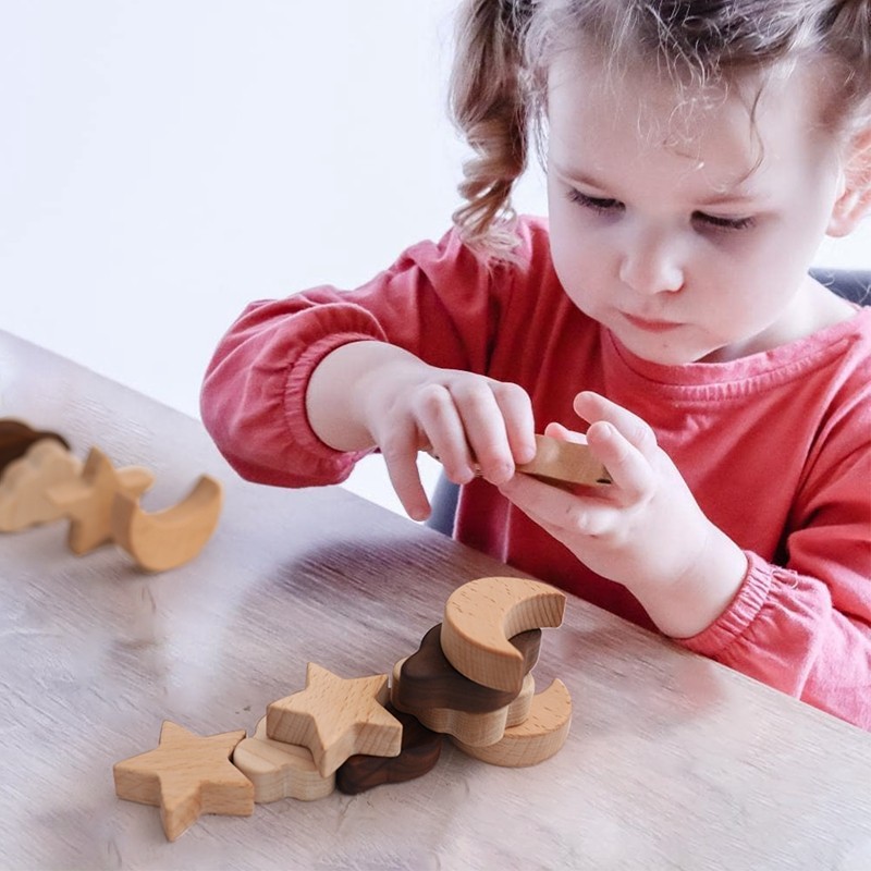 Montessori Di Legno Blocchi di Stelle Luna Impilati Blocchi di Giocattoli di Legno Giocattoli Educativi Per Bambini Fai Da Te Del Bambino Formazione Equilibrio Costruttore