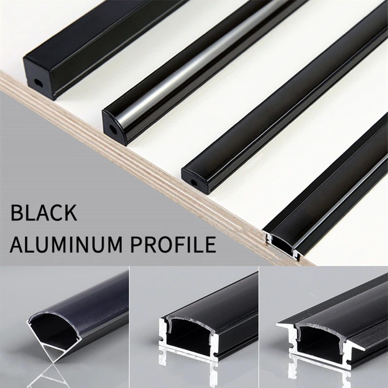 黒のハウジングとV/U/YWを備えたLEDストリップライト,アルミニウムプロファイル,埋め込み式フレームレス,乳白色チャネル,ハードバー,キャビネット用,0.5/メール/ピース