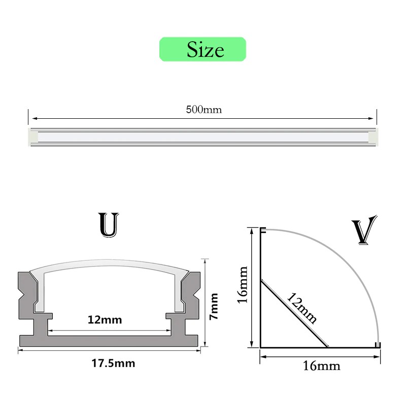 1.LEDアルミプロファイルハウジング: 50cm/セットx1-28セット